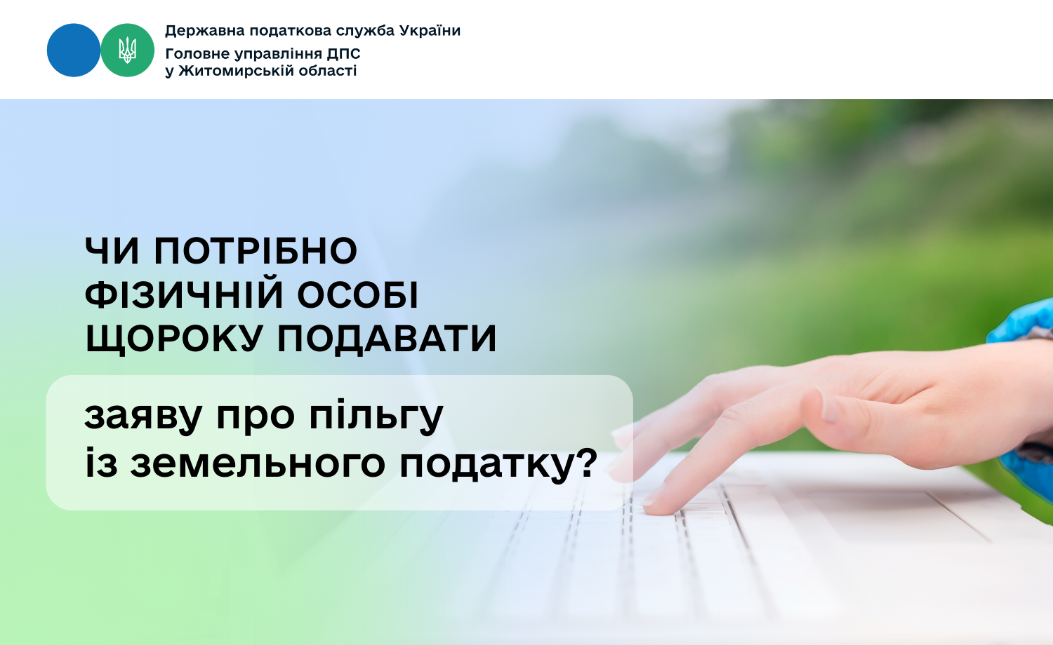 При цьому нормами ПКУ не визначено для фізичної особи обов’язку щорічного подання контролюючому органу заяви про застосування пільги та документів, які підтверджують її право на таку пільгу. Тобто, фізична особа подає до контролюючого органу нову заява про застосування пільги тільки у разі наявності змін у володінні земельними ділянками або зміни земельних ділянок для застосування пільги.