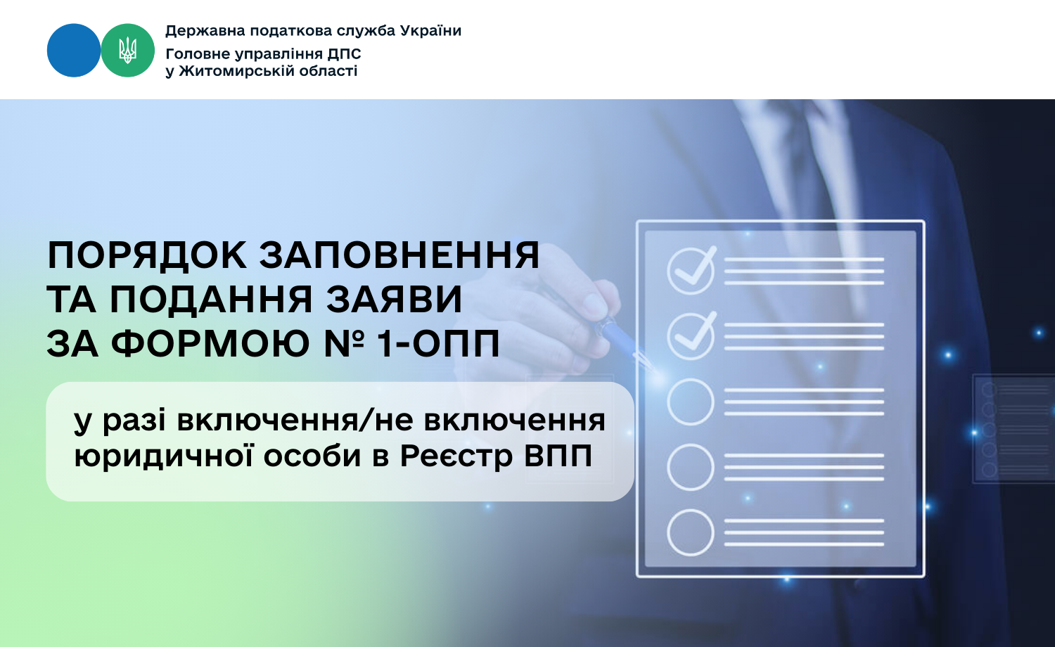 Порядок заповнення та подання заяви за формою № 1-ОПП у разі включення / не включення юридичної особи в Реєстр ВПП