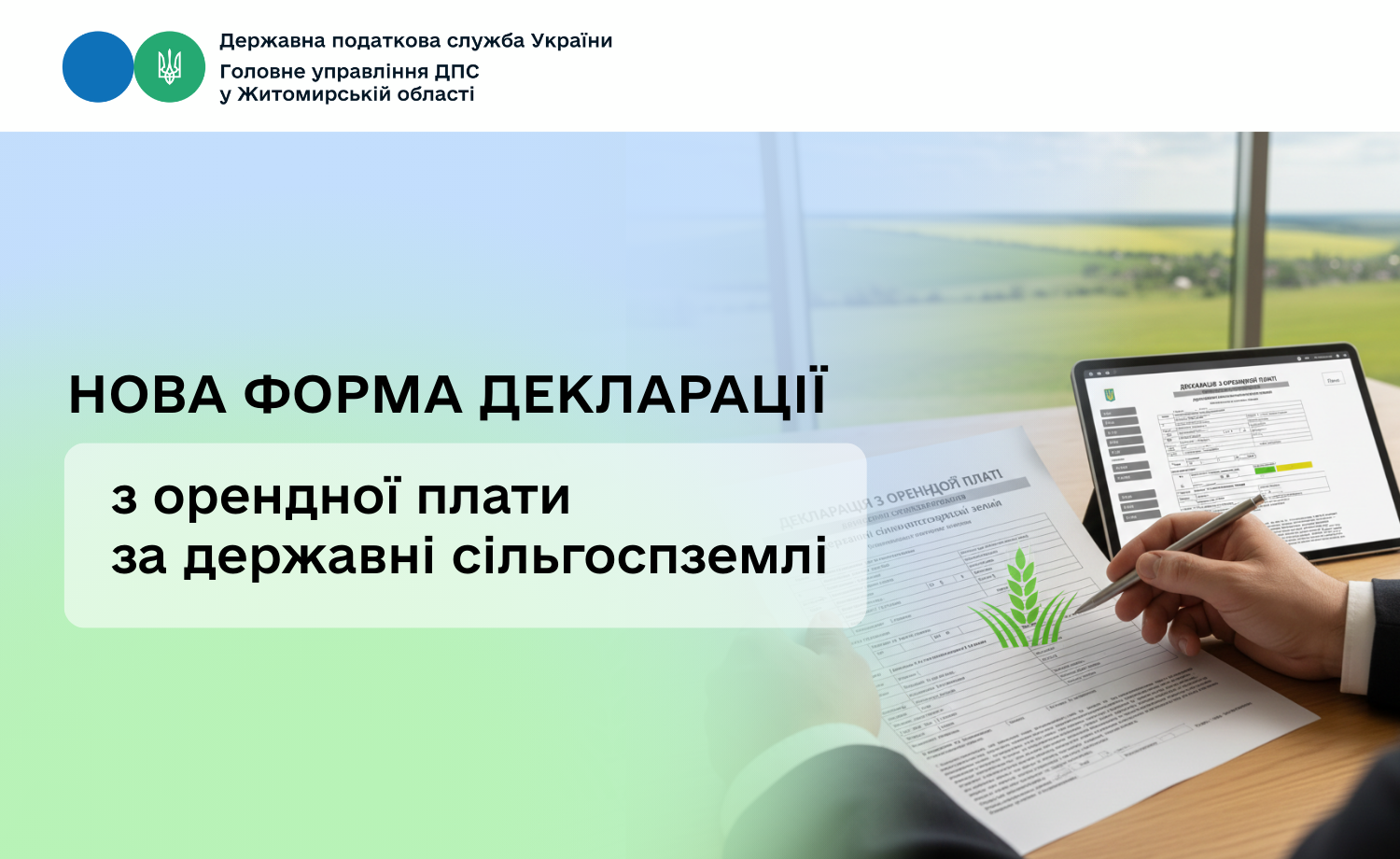 З 1 січня 2026 року платники подаватимуть за новою формою податкову декларацію з орендної плати за земельні ділянки сільськогосподарського призначення державної власності.