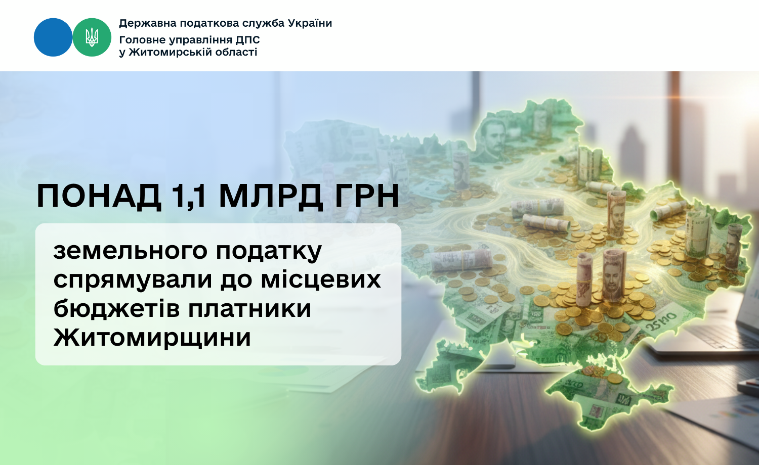 За 2025 рік місцеві бюджети Житомирської області отримали 1 млрд 132,3 млн грн земельного податку. Це на 197,7 млн грн більше, ніж у 2024 році.