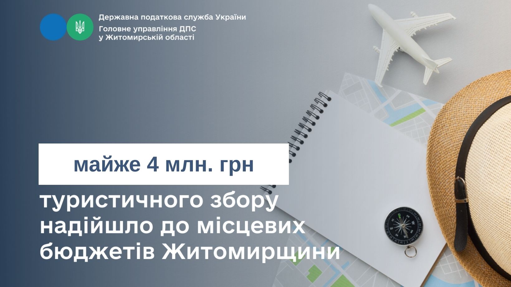 Майже 3 млн. грн. сплатили фізичні особи підприємці, які здійснюють діяльність у сфері туризму, решту – 0,9 млн.грн. надійшло від юридичних осіб. Про це повідомив начальник Головного управління ДПС у Житомирській області Олександр М’ясковський.