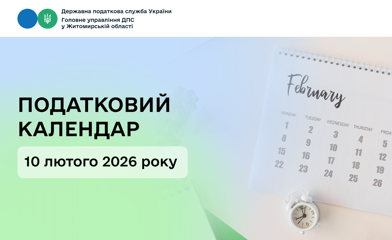 В Головному управлінні ДПС в Житомирській області інформують, що 10 лютого 2026 р. останній день подання: