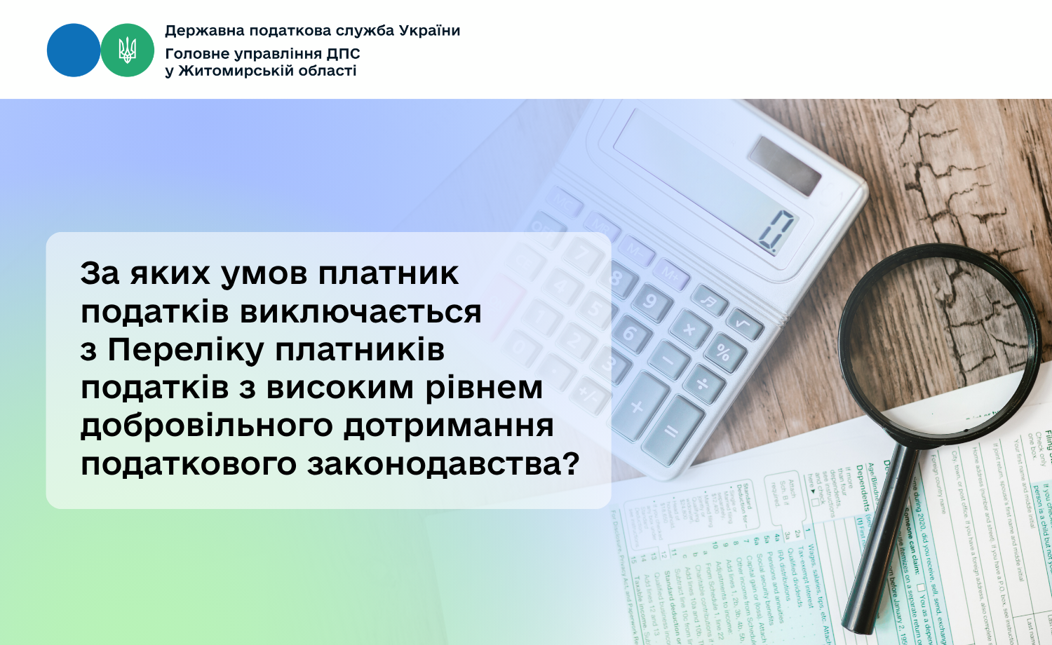 Головне управління ДПС у Житомирській області повідомляє, що відповідно до п.п. 69.41 п. 69 підрозд. 10 розд. XX «Перехідні положення» Податкового кодексу України від 02 грудня 2010 року № 2755-VI (далі – ПКУ) на період дії воєнного стану в Україні, введеного Указом Президента України «Про введення воєнного стану в Україні» від 24 лютого 2022 року № 64/2022, затвердженим Законом України «Про затвердження Указу Президента України «Про введення воєнного стану в Україні» від 24 лютого 2022 року № 2102-IX, та по 31 грудня року, в якому воєнний стан буде припинено або скасовано, для платників податків з високим рівнем добровільного дотримання податкового законодавства встановлюються особливості адміністрування податків, зборів, платежів, що здійснюється контролюючими органами, визначеними п.п. 41.1.1 п. 41.1 ст. 41 ПКУ (податкового адміністрування), визначені п.п. 69.41 п. 69 підрозд. 10 розд. XX «Перехідні положення» ПКУ.