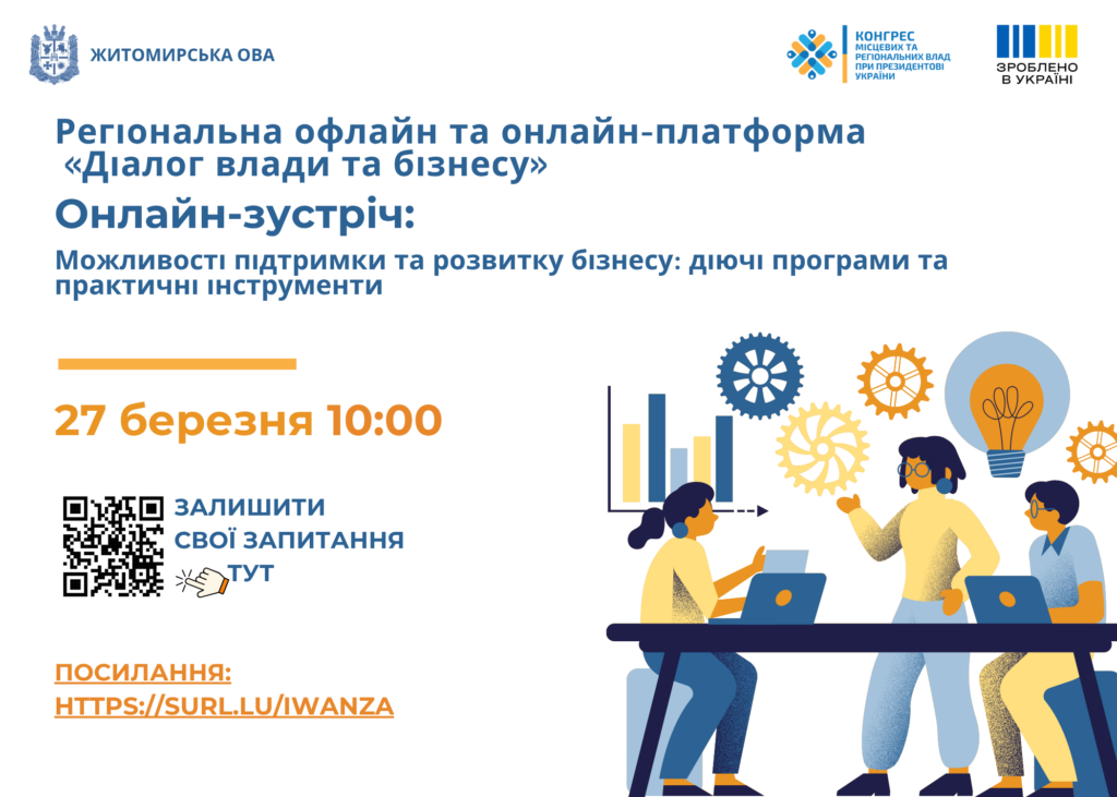 27 березня о 10:00 у рамках проєкту «Діалог влади та бізнесу» відбудеться чергове засідання на тему: «Можливості підтримки та розвитку бізнесу: діючі програми та практичні інструменти».