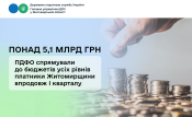 Надходження ПДФО: понад 5,1 млрд грн за перший квартал 2026 від платників Житомирщини