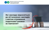 Які заклади відносяться до вітчизняних закладів з метою отримання податкової знижки за навчання?