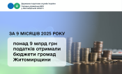 Впродовж січня – вересня цього року платники податків перерахували до місцевих бюджетів 9 млрд 105 млн гривень. У порівнянні із аналогічним періодом минулого року надходження зросли на 1 млрд 536,9 млн грн, або на 20,3 відсотки.