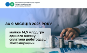 Роботодавці Житомирщини сплатили майже 14,5 млрд гривень єдиного внеску