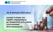 За дев’ять місяців платники спрямували до бюджетів усіх рівнів 9 мільярдів 327 мільйонів гривень податку на доходи фізичних осіб. Як зазначив в.о. начальника Головного управління ДПС у Житомирській області Олександр М’ясковський, рівень минулорічної сплати перевищено на 1 мільярд 515 мільйонів гривень.