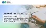 За 9 місяців цього року до місцевих бюджетів надійшло майже 55,9 млрд грн єдиного податку. Порівняно з відповідним періодом минулого року це більше на 11,4 %, або + 5,7 млрд грн.