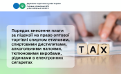 Порядок внесення плати за ліцензії на право оптової торгівлі спиртом етиловим, спиртовими дистилятами, алкогольними напоями, тютюновими виробами, рідинами, що використовуються в електронних сигаретах