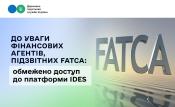 До уваги фінансових агентів, підзвітних FATCA: обмежено доступ до платформи IDES