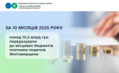 Житомирщина: за 10 місяців цього року надходження до місцевих бюджетів зросли понад на 20 відсотків