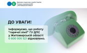 Інформуємо, що телефон «гарячої лінії» Головного управління ДПС у Житомирській області 0-800-505-521 відновив свою роботу.