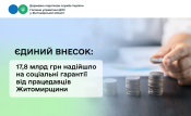 За 11 місяців цього року платники Житомирської області перерахували до бюджету 17,8 млрд грн єдиного соціального внеску (ЄСВ). Це на 2,8 млрд грн більше, ніж за відповідний період минулого року