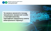 Частиною другою ст. 23 Закону України від 05 жовтня 2017 року № 2155-VIII «Про електронну ідентифікацію та електронні довірчі послуги» (далі – Закон № 2155) визначено перелік обов’язкових даних, які повинен містити кваліфікований сертифікат відкритих ключів, інформація про займану посаду користувача не є обов’язковими даними. Проте частиною п’ятою ст. 23 Закону № 2155 передбачено, що кваліфіковані сертифікати відкритих ключів можуть містити інші необов’язкові додаткові спеціальні атрибути, визначені у стандартах для кваліфікованих сертифікатів відкритих ключів. Такі атрибути не повинні впливати на інтероперабельність і визнання кваліфікованих електронних підписів чи печаток.