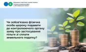 Також, якщо право на пільгу у фізичної особи, яка має у власності декілька земельних ділянок одного виду використання, виникає протягом календарного року та/або фізична особа, визначена у п. 281.1 ст. 281 ПКУ, набуває право власності на земельну ділянку / земельні ділянки одного виду використання, така особа подає заяву про застосування пільги до контролюючого органу за місцем знаходження будь-якої земельної ділянки протягом 30 календарних днів з дня набуття такого права на пільгу та/або права власності (абзац перший п. 281.5 ст. 281 ПКУ).