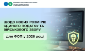 Щодо нових розмірів єдиного податку та військового збору для ФОП у 2026 році