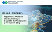 Місцеві бюджети Житомирщини у січні цього року отримали понад 1 млрд грн податкових платежів