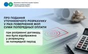 У разі повернення фізичною особою – підприємцем суми попередньої оплати при розірванні договору, яка була відображена суб’єктом господарювання у Розрахунку за попередній період, суб’єкт господарювання зазначає таку суму повернення з від’ємним значенням у складі Розрахунку за будь-який наступний податковий період, протягом якого відбулося таке повернення коштів.