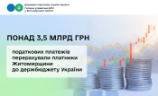 Як інформує начальник ГУ ДПС у Житомирській області Олександр М’ясковський, платники Житомирщини за два місяці цього року перерахували до державного бюджету 3 млрд 573,1 млн гривень податкових платежів. Порівняно із відповідним періодом минулого року надходження збільшились на 515,7 млн грн.