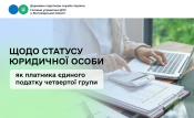 ГУ ДПС у Житомирській області нагадує, що до платників єдиного податку, які відносяться до четвертої групи – сільськогосподарські товаровиробники, належать юридичні особи незалежно від організаційно-правової форми, у яких частка сільськогосподарського товаровиробництва за попередній податковий (звітний) рік дорівнює або перевищує 75 відсотків.