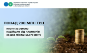 Майже 90 відсотків цього платежу – внесок юридичних осіб, ними перераховано 180,3 млн грн плати за землю, фізичні особи сплатили до місцевих громад 20,4 млн гривень.
