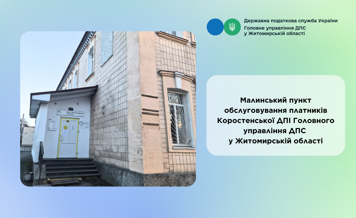 Малинський пункт обслуговування платників Коростенської ДПІ Головного управління ДПС у Житомирській області